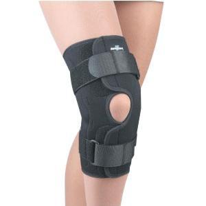 BSN Jobst FLA Orthopedics® Safe-T-Sport® Hinged Knee Stabilizing Brace XL, Black, Neoprene, 20" to 21" Knee Circumference Neoprene knee sleeve with durable steel hinged reinforcements allow for flexion limiting medial/lateral movement with a 180º hyperextension stop. Hinge is in neoprene covered pocket for added comfort. Brace includes a superior horseshoe for added patella stability. Two loop lock straps can be adjusted to give the most intimate and comfortable fit while helping prevent brace migration. Sports neoprene with nylon terry liner has a soft, seamless feel against the skin. Open patella and easy slip on style.