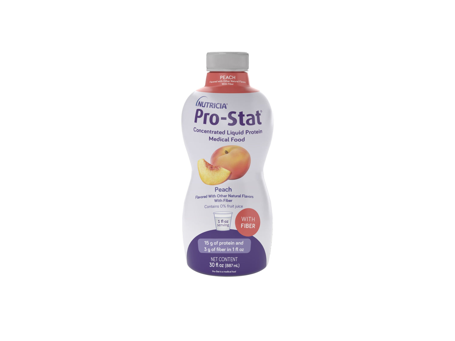 Pro-Stat, Peach, With Fiber. 30 fluid ounces. 100 Calories per ounce.