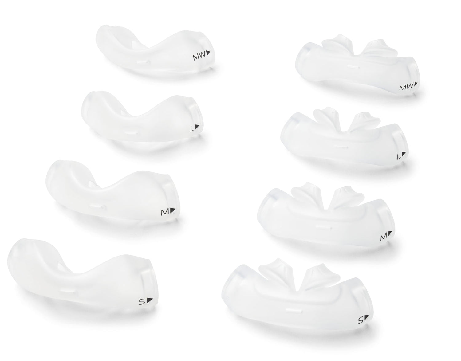 • The stalk-less cone-shaped design of the silicone pillows cushion provides patients with a secure fit and seal